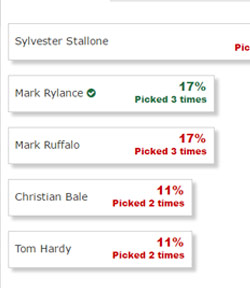 - Members pick who they think will win in each of the 24 award categories