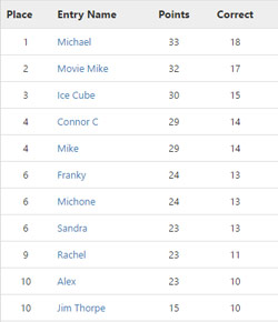 The following samples are just a few of the reports you'll see for your Academy Awards pool.