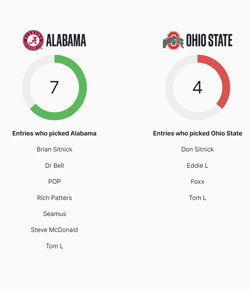 • Members pick the winner of all 41 College Football Bowl games ("straight up", not using the point spread)